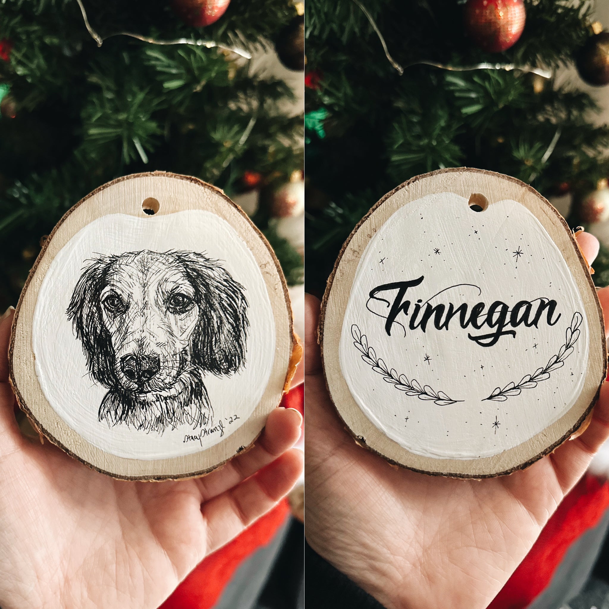 Custom Portrait + Name - Wood Ornament w/ Ribbon - Double sided