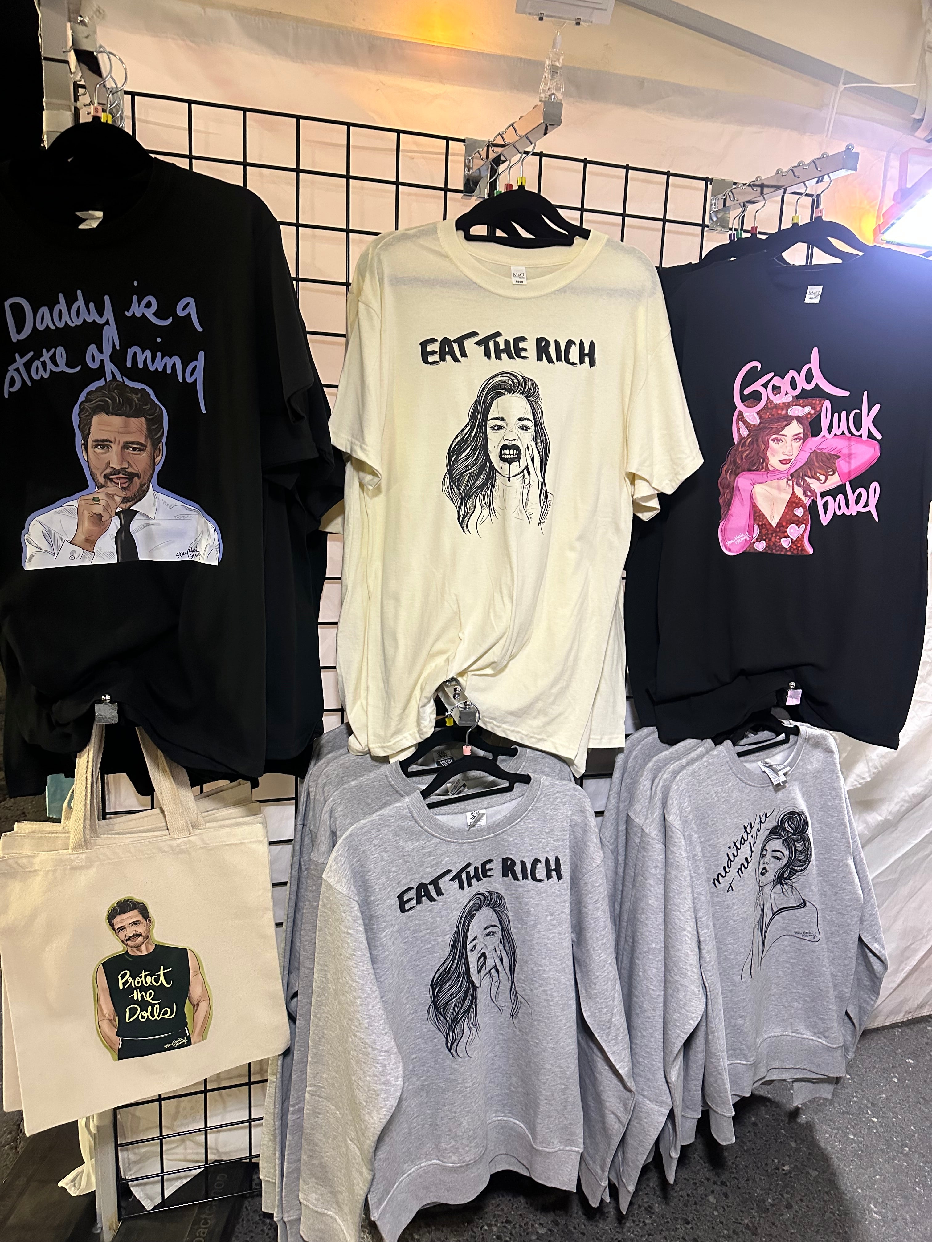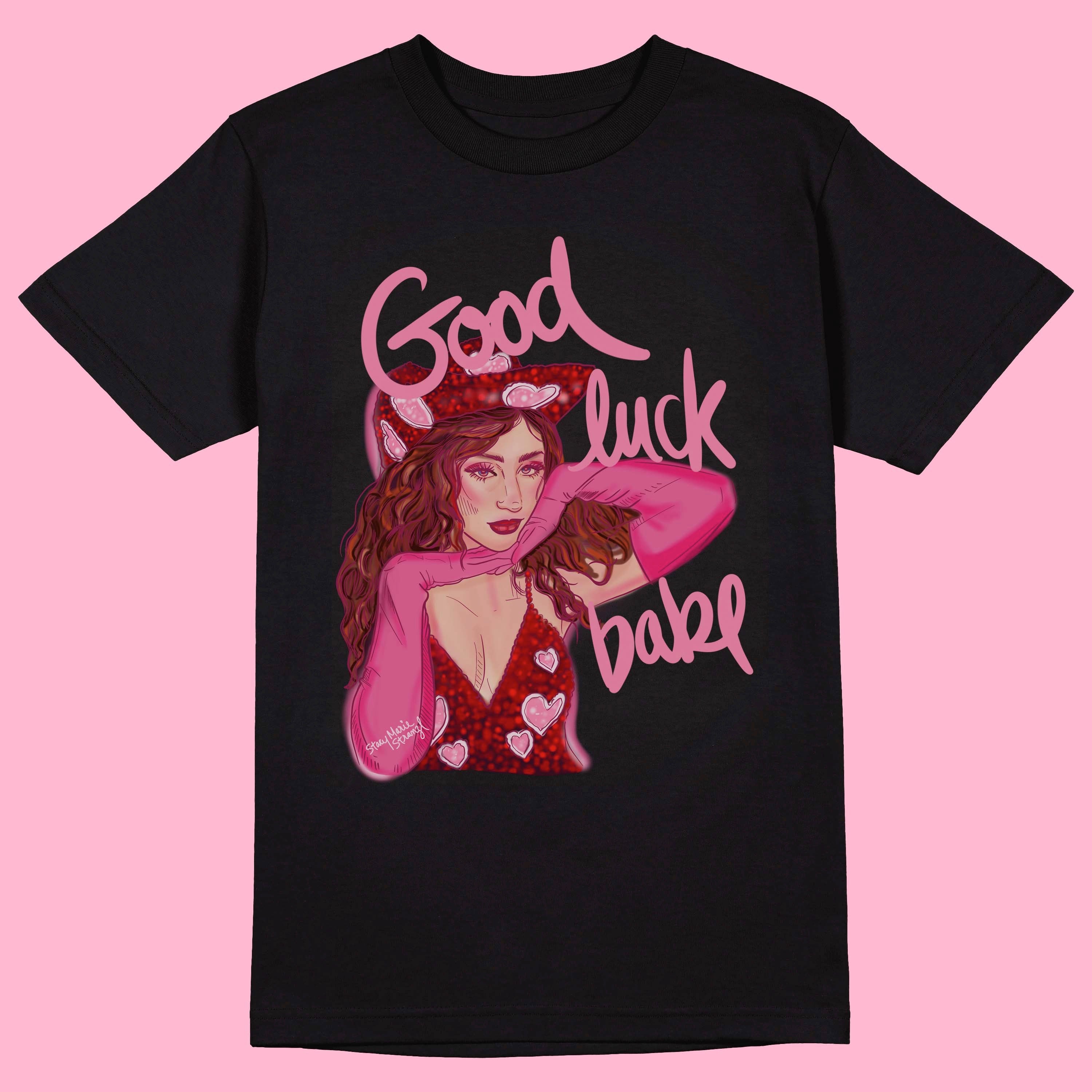 This black tee features Stacy’s original illustration of Chappel Roan with the phrase “Good Luck Babe.” Made from 100% pre-shrunk cotton, it’s soft, durable, and made by Stacy in Toronto. Unisex fit, true to size.