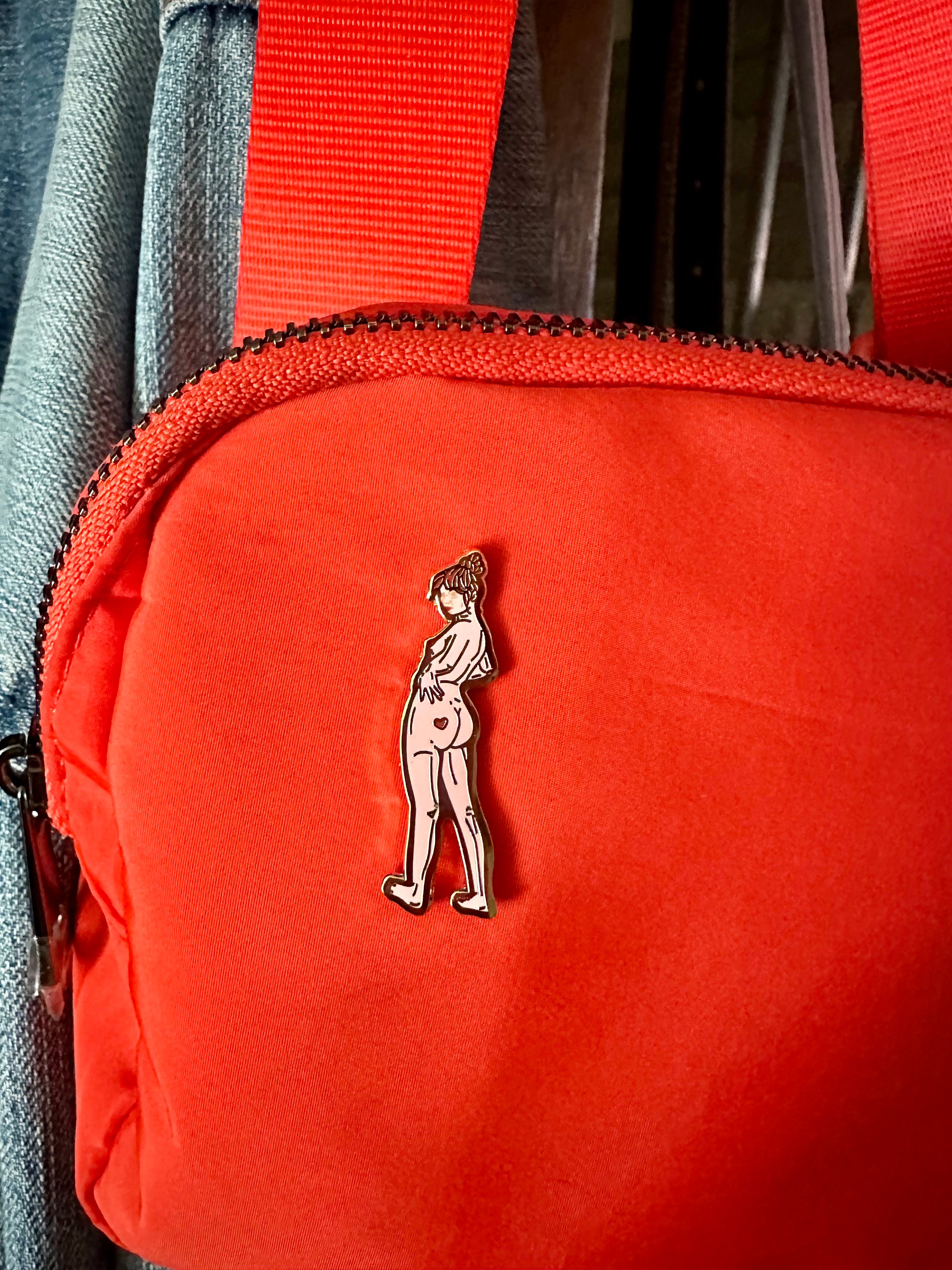 This 1.5" Enamel Pin is made with hard enamel and shiny gold plating for a stylish dose of wearability. Featuring a flirty heart on the rear, this adorable pin is perfect for integrating fun into any attire. An eye-catching mix of pink and red adds to the classic feel of this wearable art. Backing is a standard metal military clasp and laser engraved with my website to remember me!