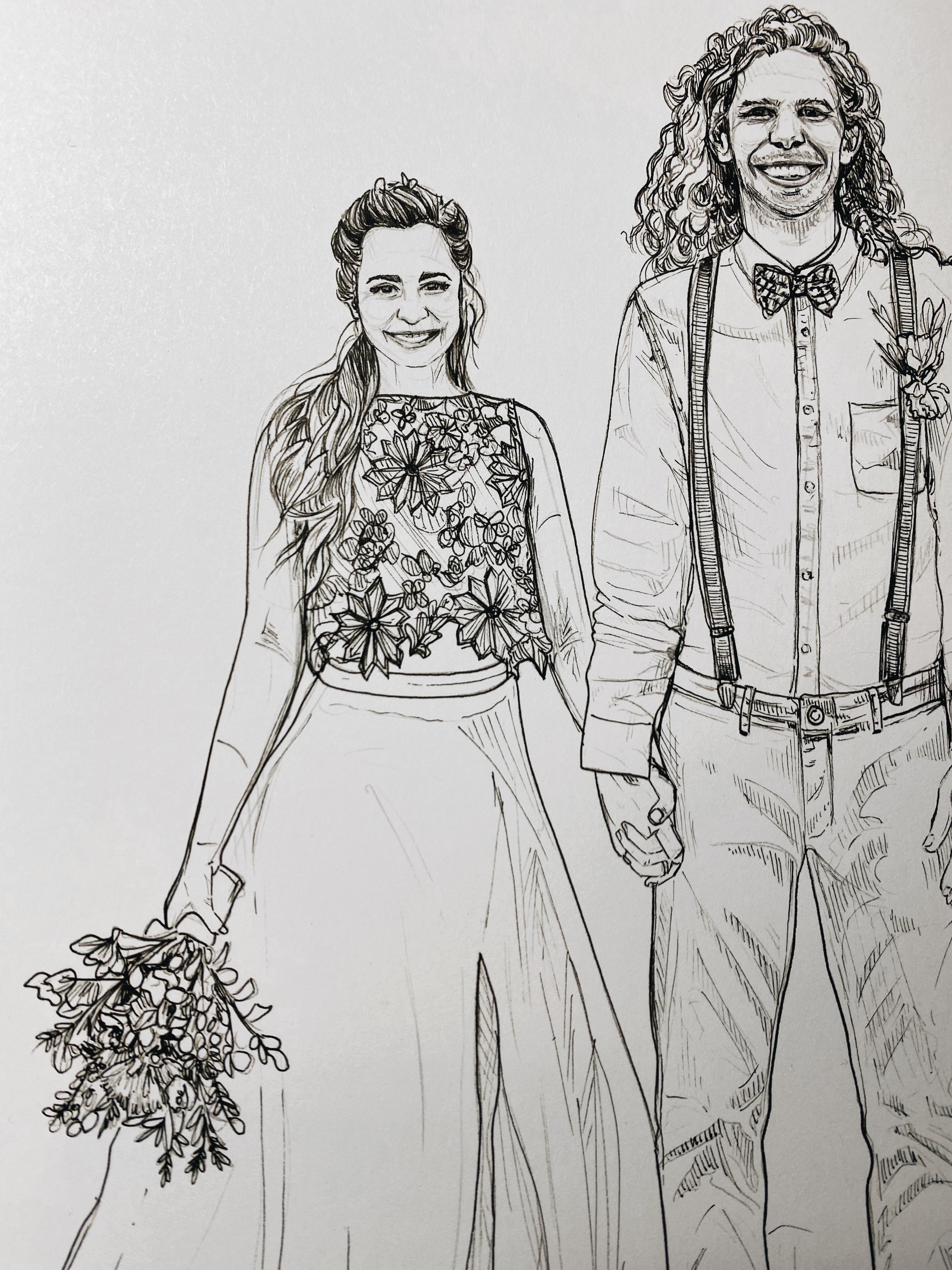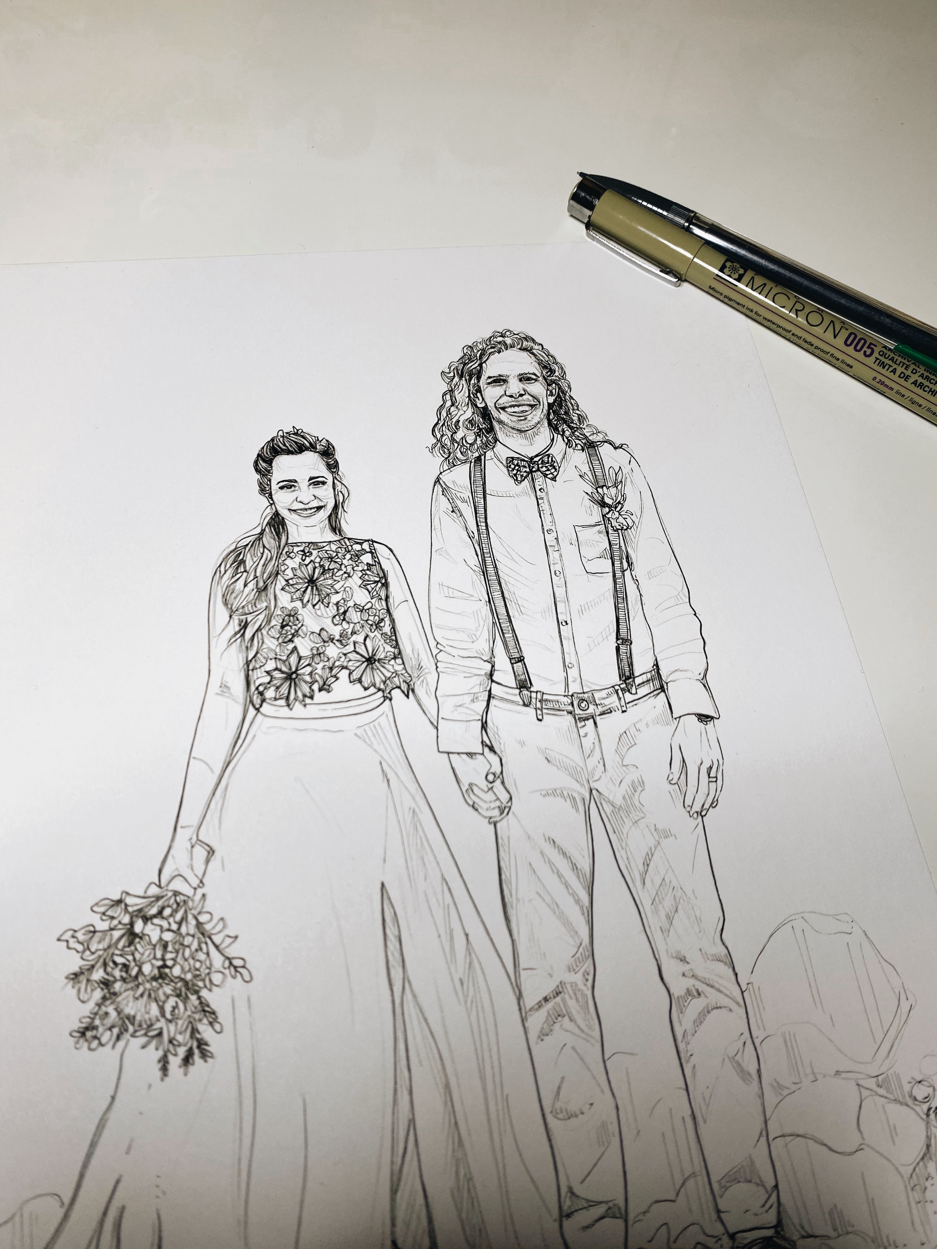 Full body portrait of two people. Can also be purchased for non-wedding full body portraits. A great gift for your favourite couple! Wedding portraits are very detailed and therefore slightly more expensive than a regular people portrait!
